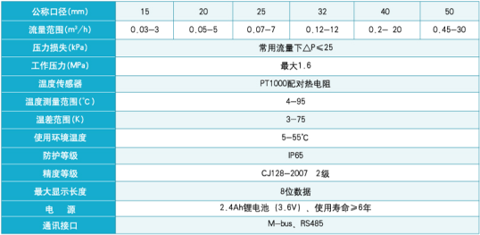 詳細說明: 該熱能表采用無磁流量采集,采集數據更加精 確,且不受水質中鐵屑、鐵銹及外界磁場等問題的影響。適用于普通民用住宅、辦公樓等集中供暖/制冷的熱(冷)量計量收費。 功能特點: ○ 全中文菜單顯示熱(冷)量值、進回水溫度、溫度差、累計流量,清晰直觀。 ○ 進、回水管道任意安裝、使用維修方便,具有防塵、防潮、防拆卸、抗強磁攻擊等功能。 ○ 進口芯片設計,采用國際 的微功耗處理技術,正常使用狀態下功耗低于10μA,保證更長的使用壽命。 ○ 符合JJG225-2001熱量表檢定規程及CJ128-2007熱量表標準,可選用紅外/RS485通信輸出,實現數據遠傳,集中控制. ○ 內置高容量環保鋰電,電池保用6年以上.